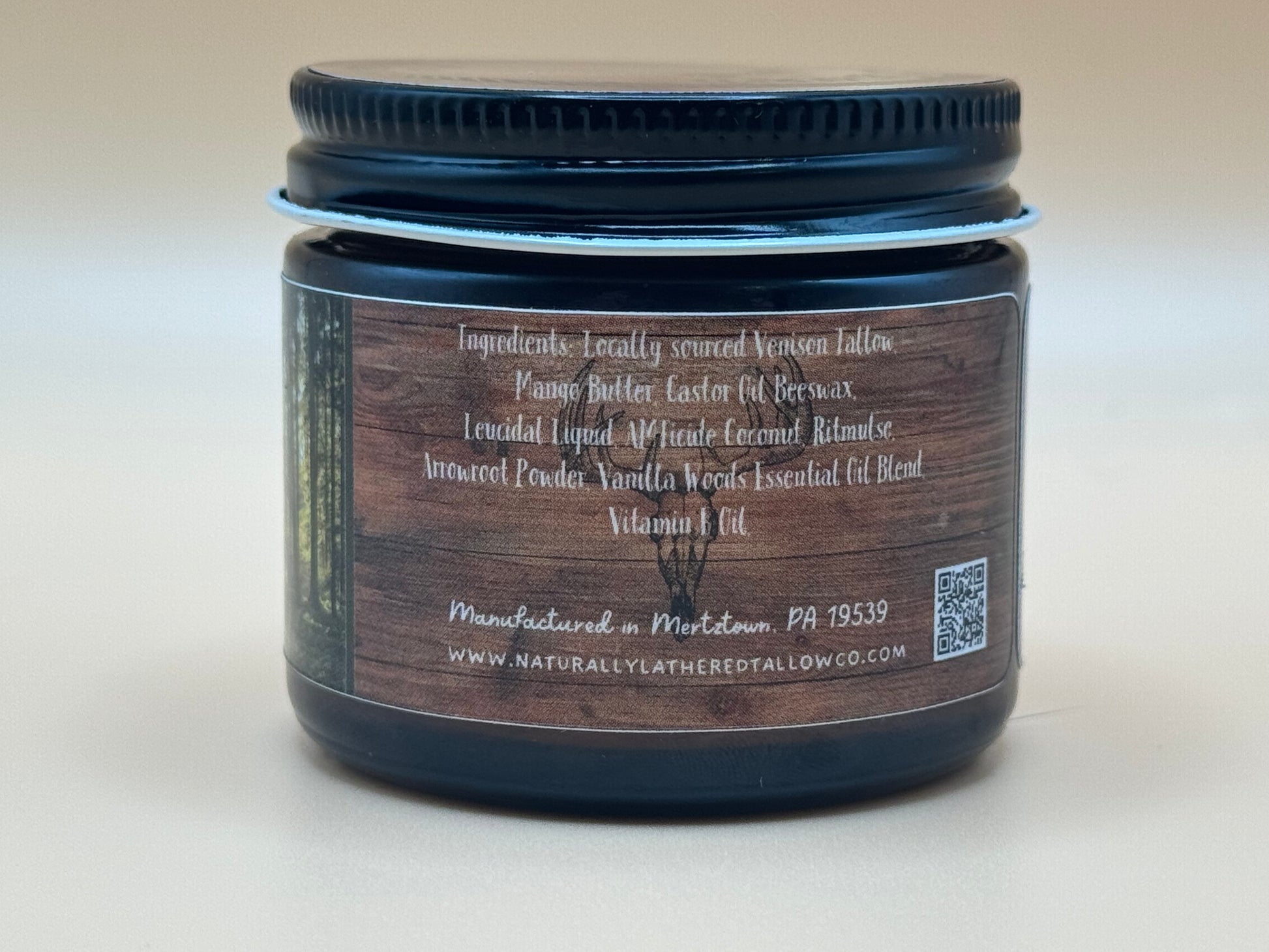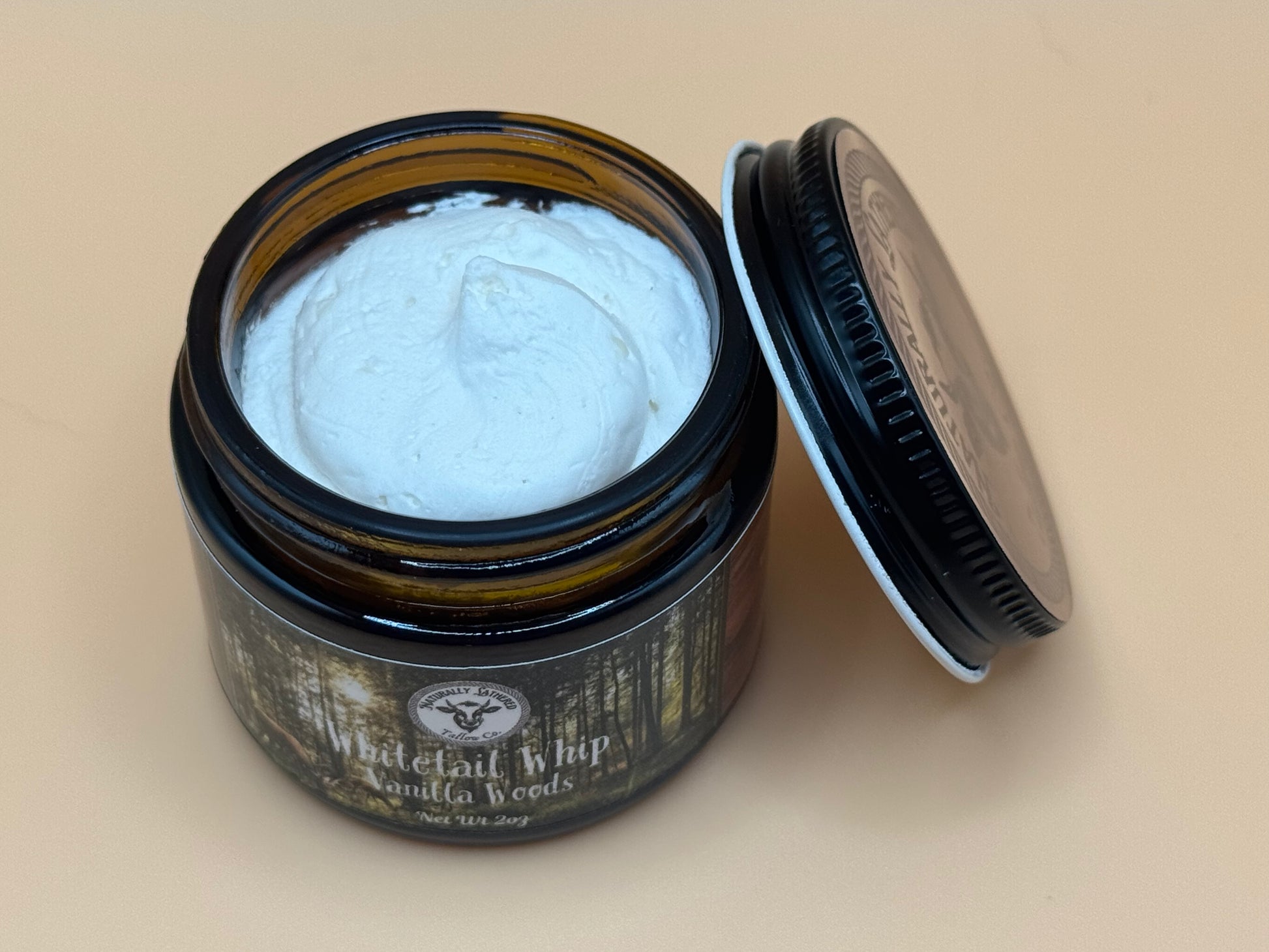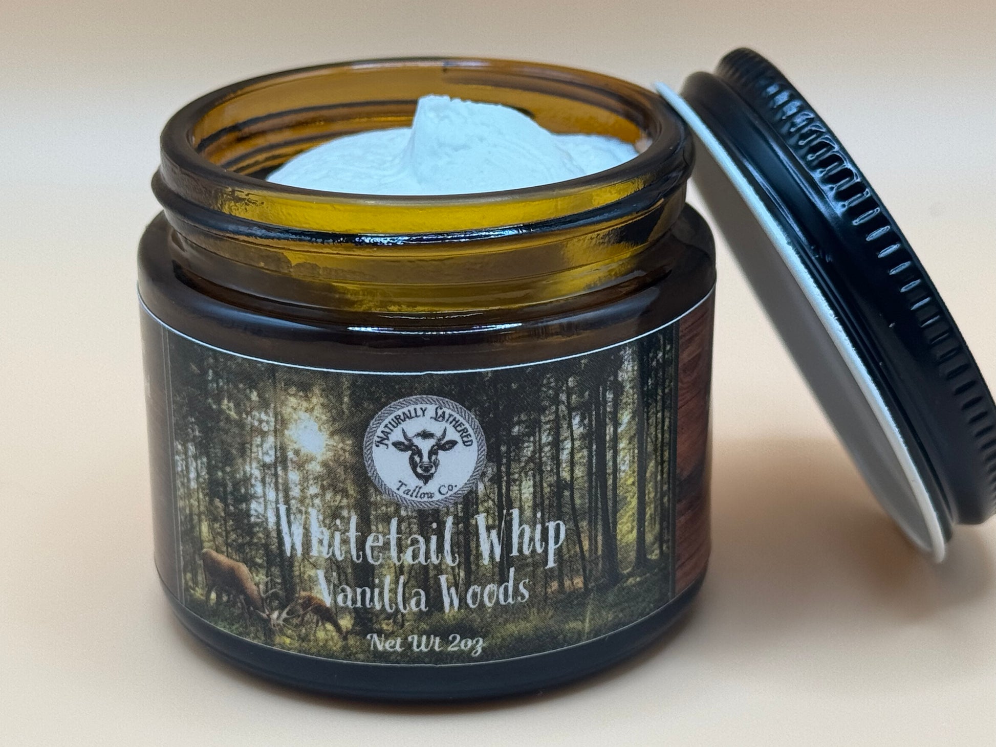 As an expert in outdoor pursuits, you'll appreciate the natural benefits of Whitetail Whip. Locally-sourced Deer Tallow is blended with Mango Butter, Castor Oil, and Beeswax for a nourishing and protective balm. Scented with Vanilla Woods essential oil blend to evoke the tranquility of the great outdoors.